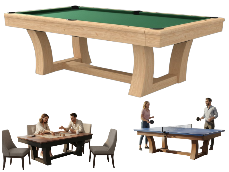 Nasze stoły to jednak znacznie więcej niż tylko profesjonalny sprzęt bilardowy. To meble, które żyją razem z Twoim domem. Dzięki dedykowanym, nakładanym blatom, w kilka chwil przekształcisz je w: