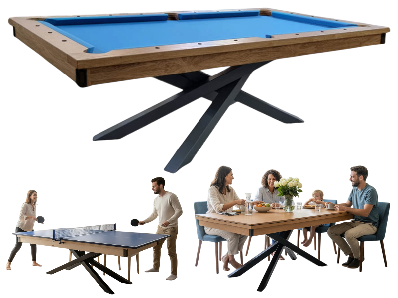 Jeden stół – wiele możliwości! Ten model to nie tylko stół bilardowy. Dzięki innowacyjnym opcjom, z łatwością przekształcisz go w: